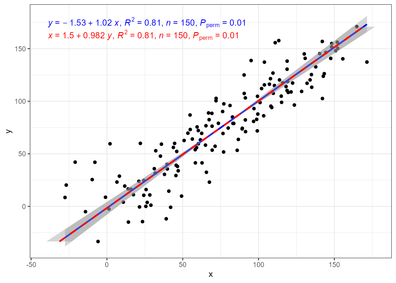 #> Legendre P (2024). _lmodel2: Model II Regression_.