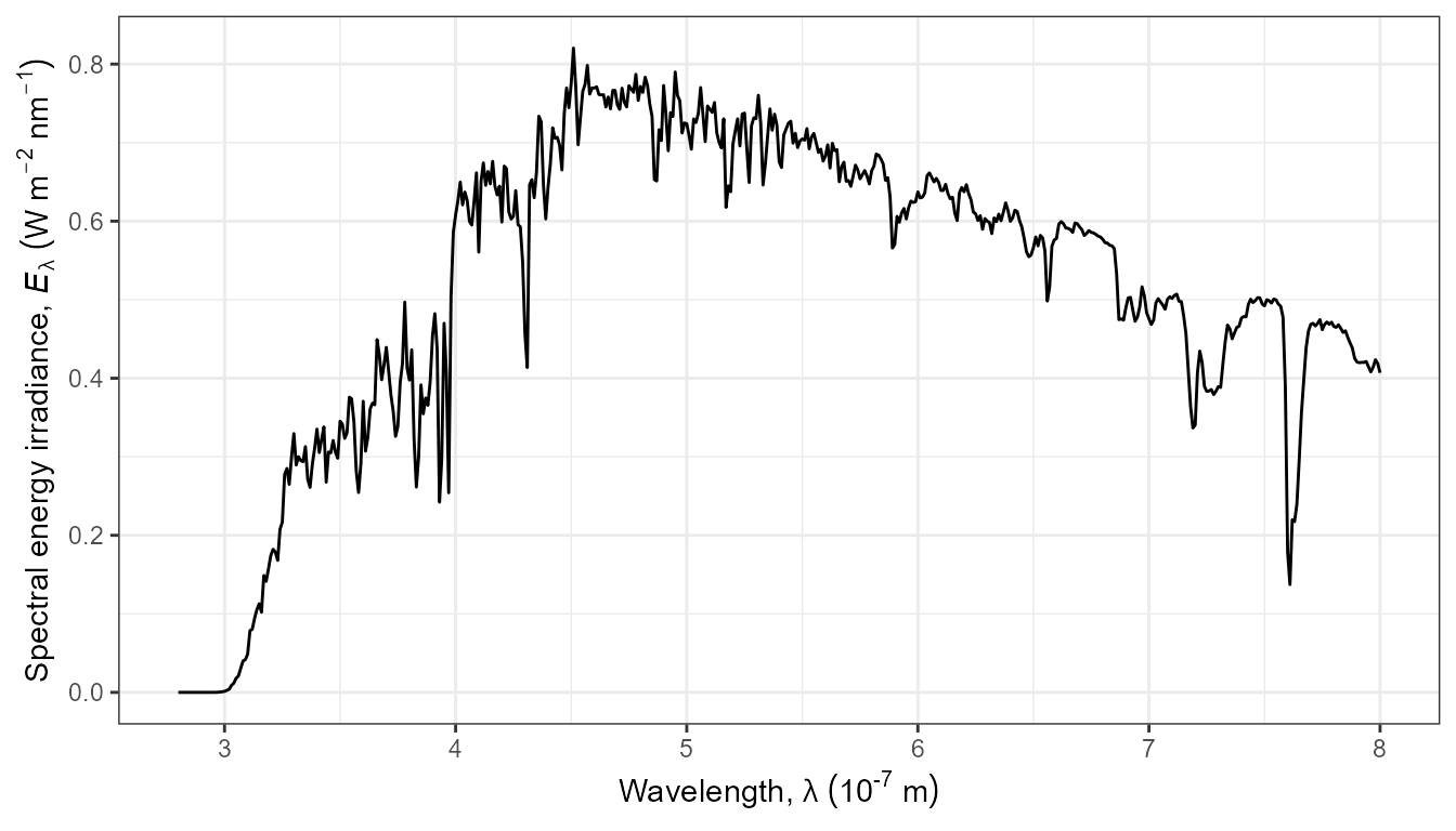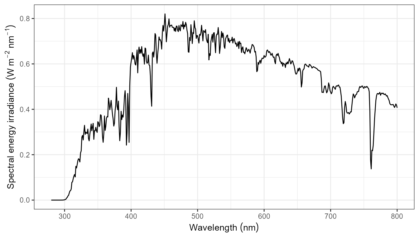 ggplot(sun.spct, unit.out = "energy") + geom_line()