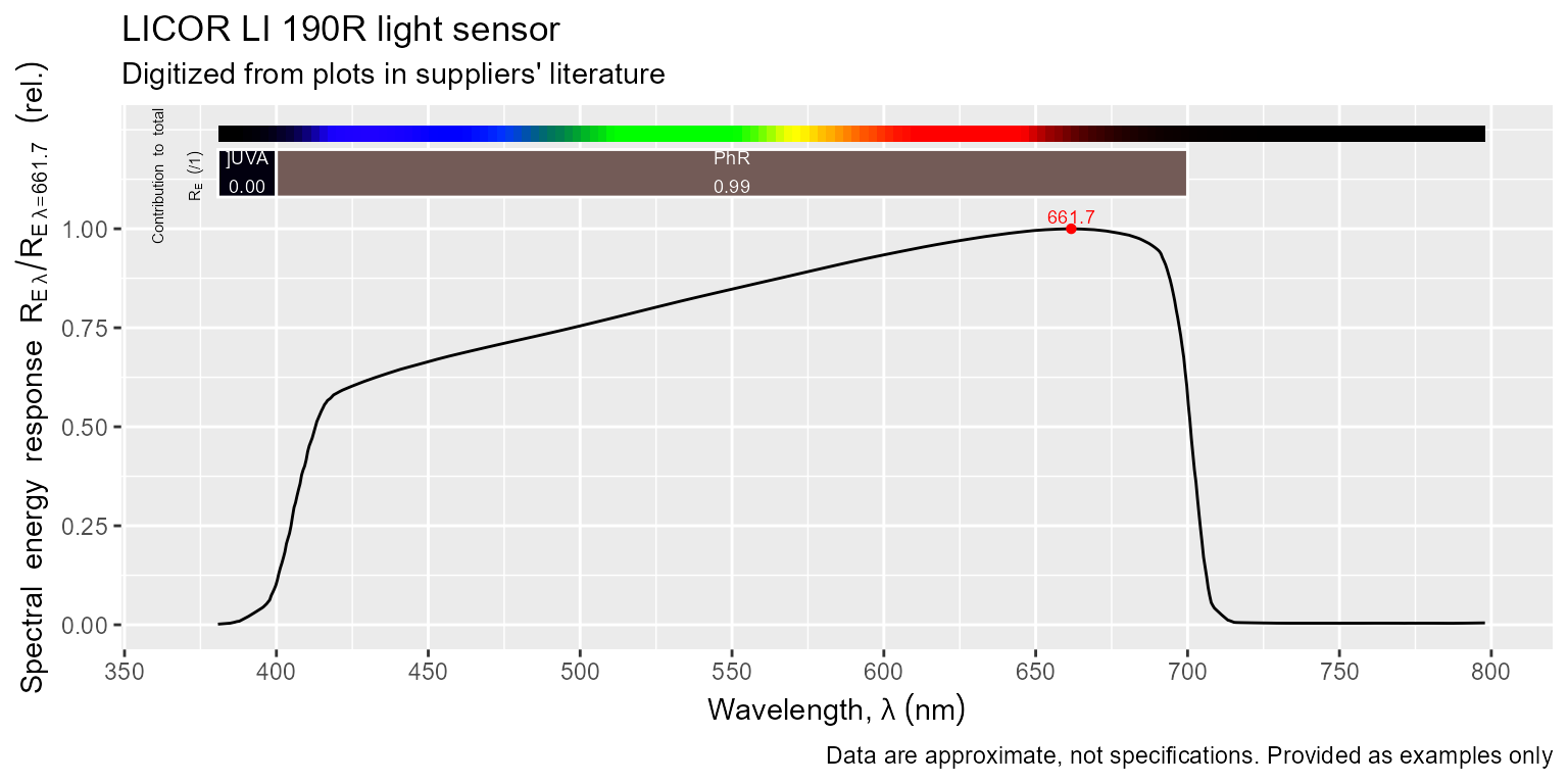 sensors.mspct[["LICOR_LI_190R"]]## Object: response_spct [214 x 2]