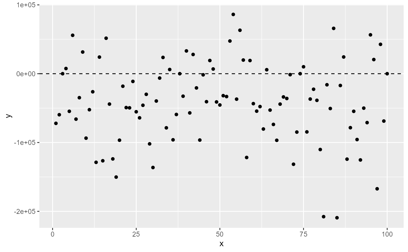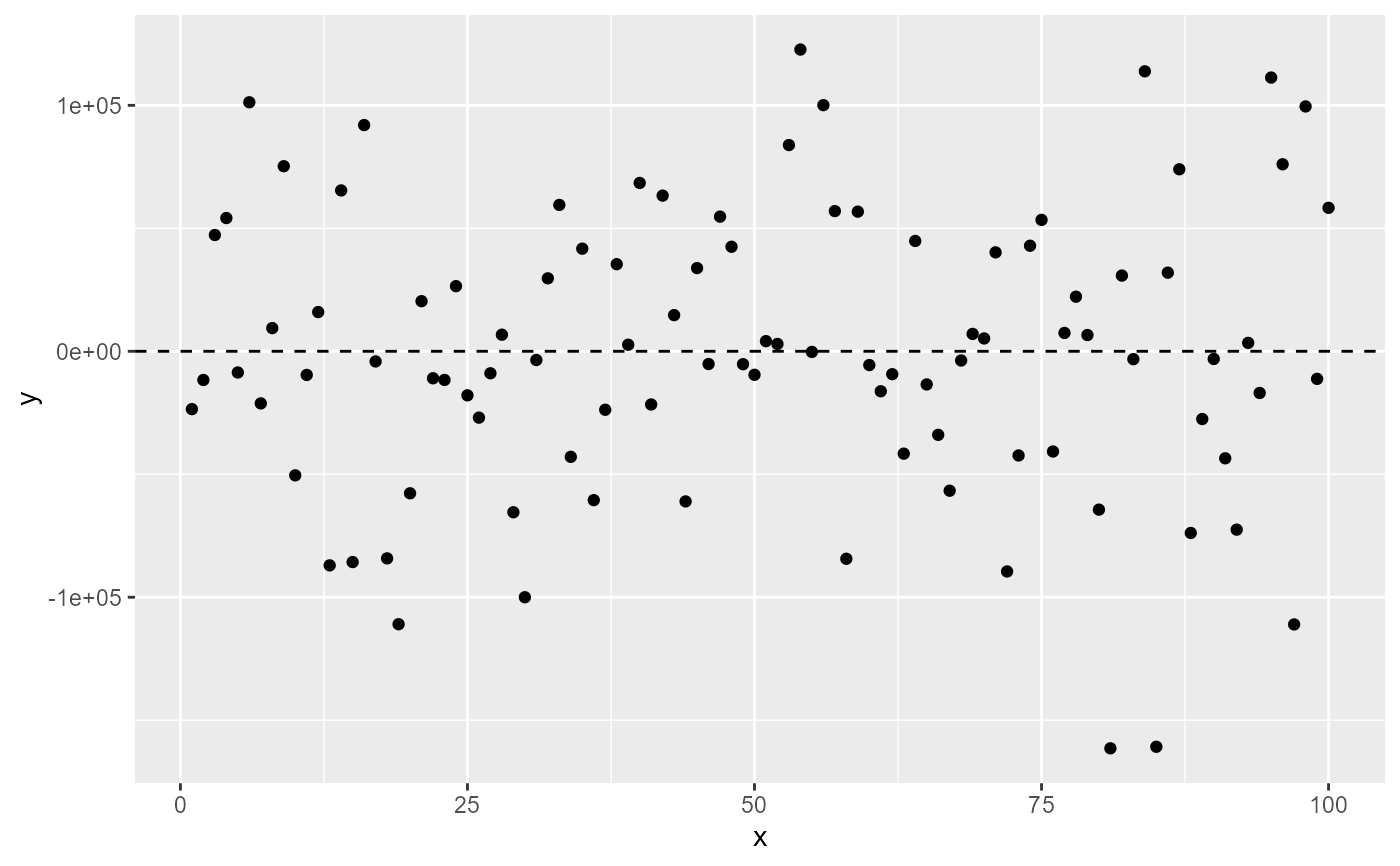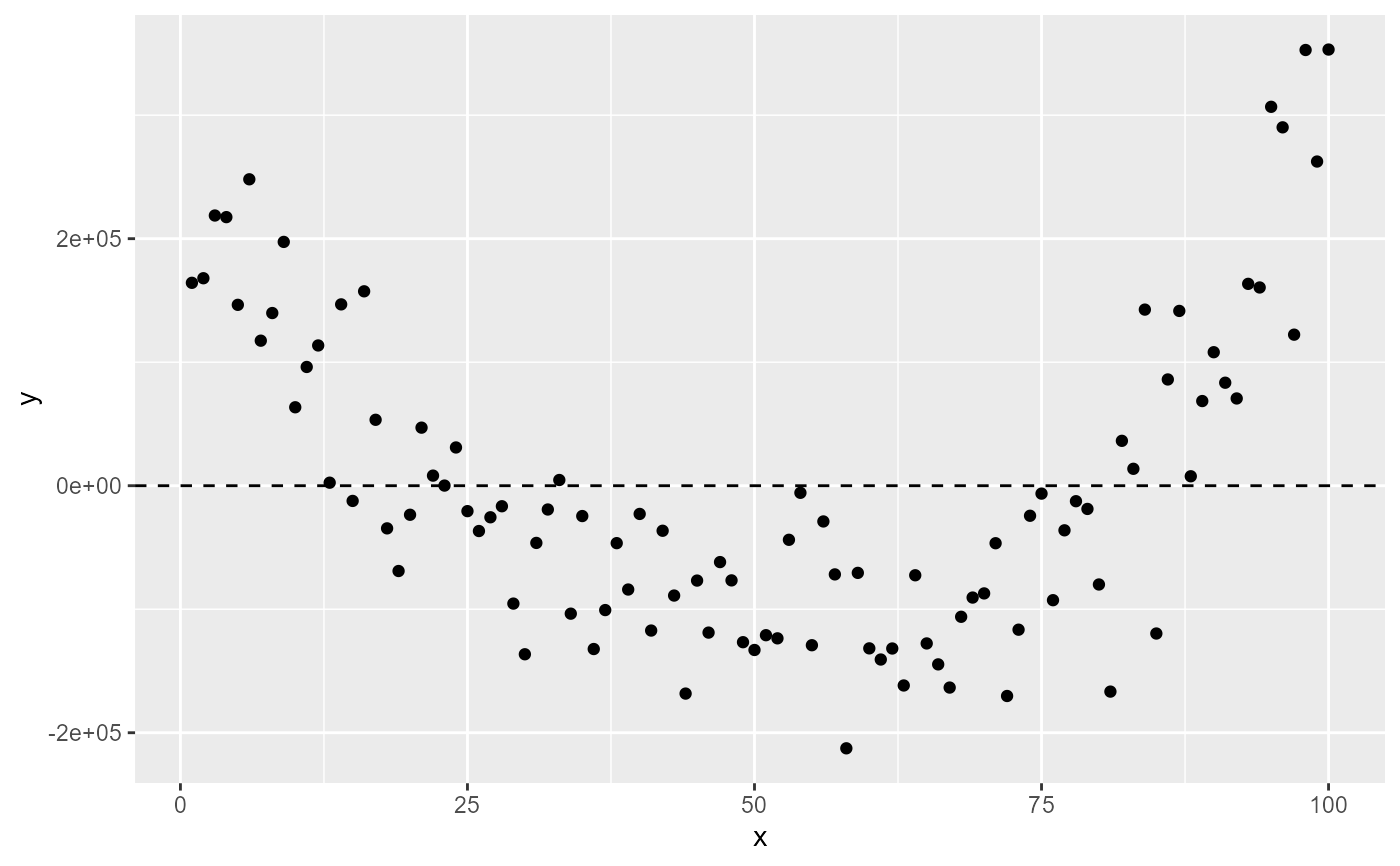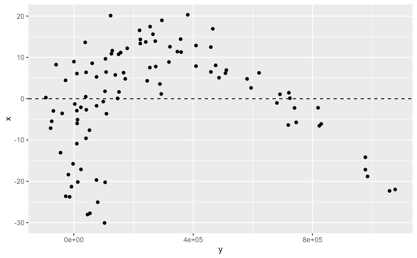 stat_fit_residuals(formula = y ~ x, weighted = TRUE)