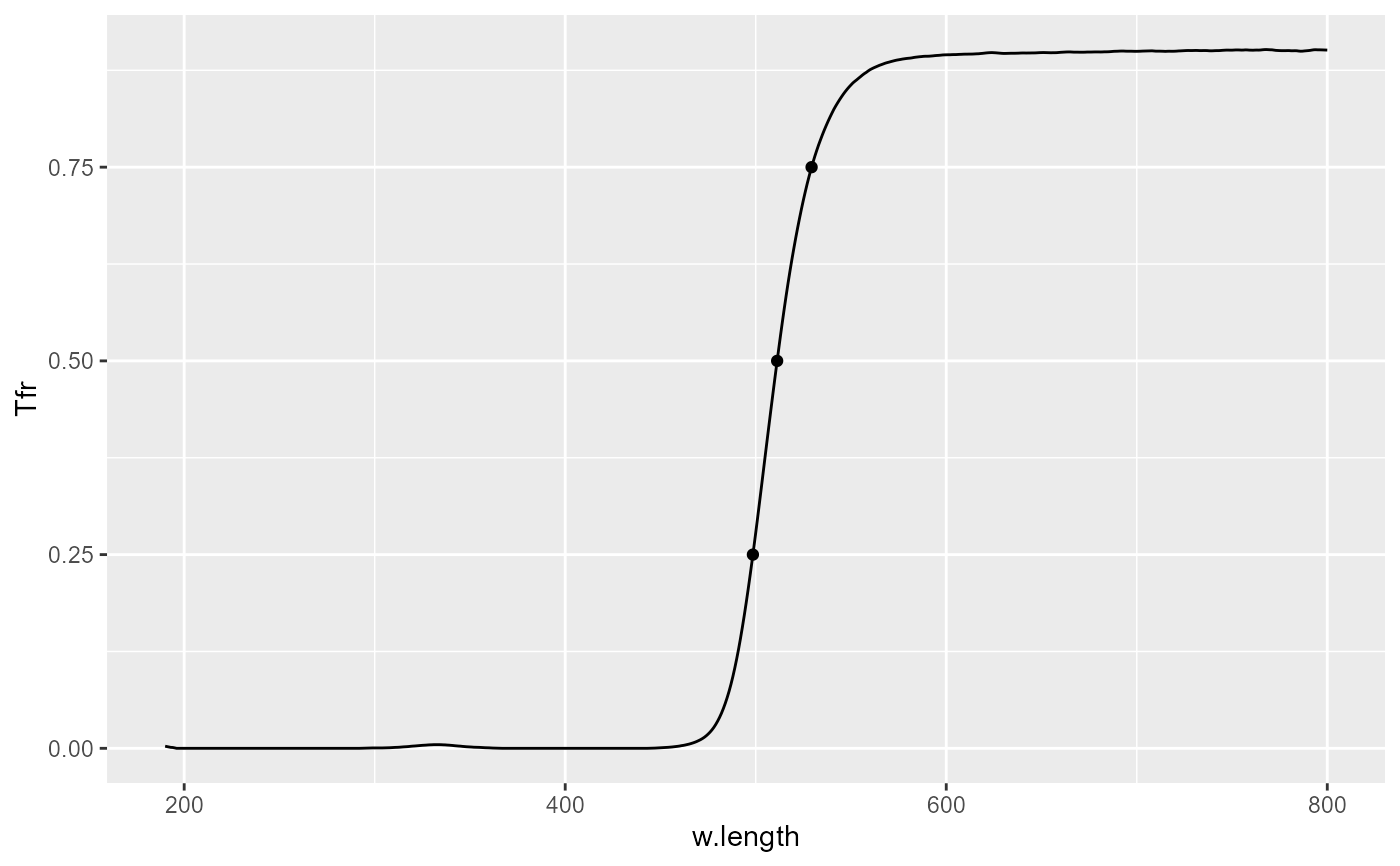 xshould be returned or a value calculated by linear interpolation between wavelength values stradling the target.- chroma.type
