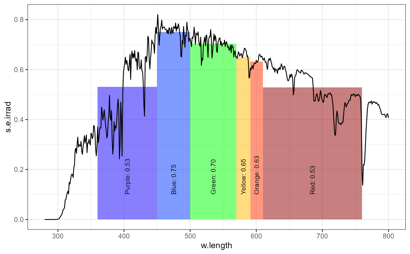 stat_wb_mean computes mean spectral irradiance under a curve for each