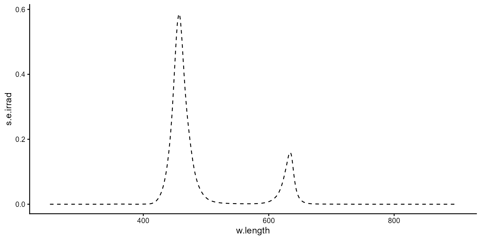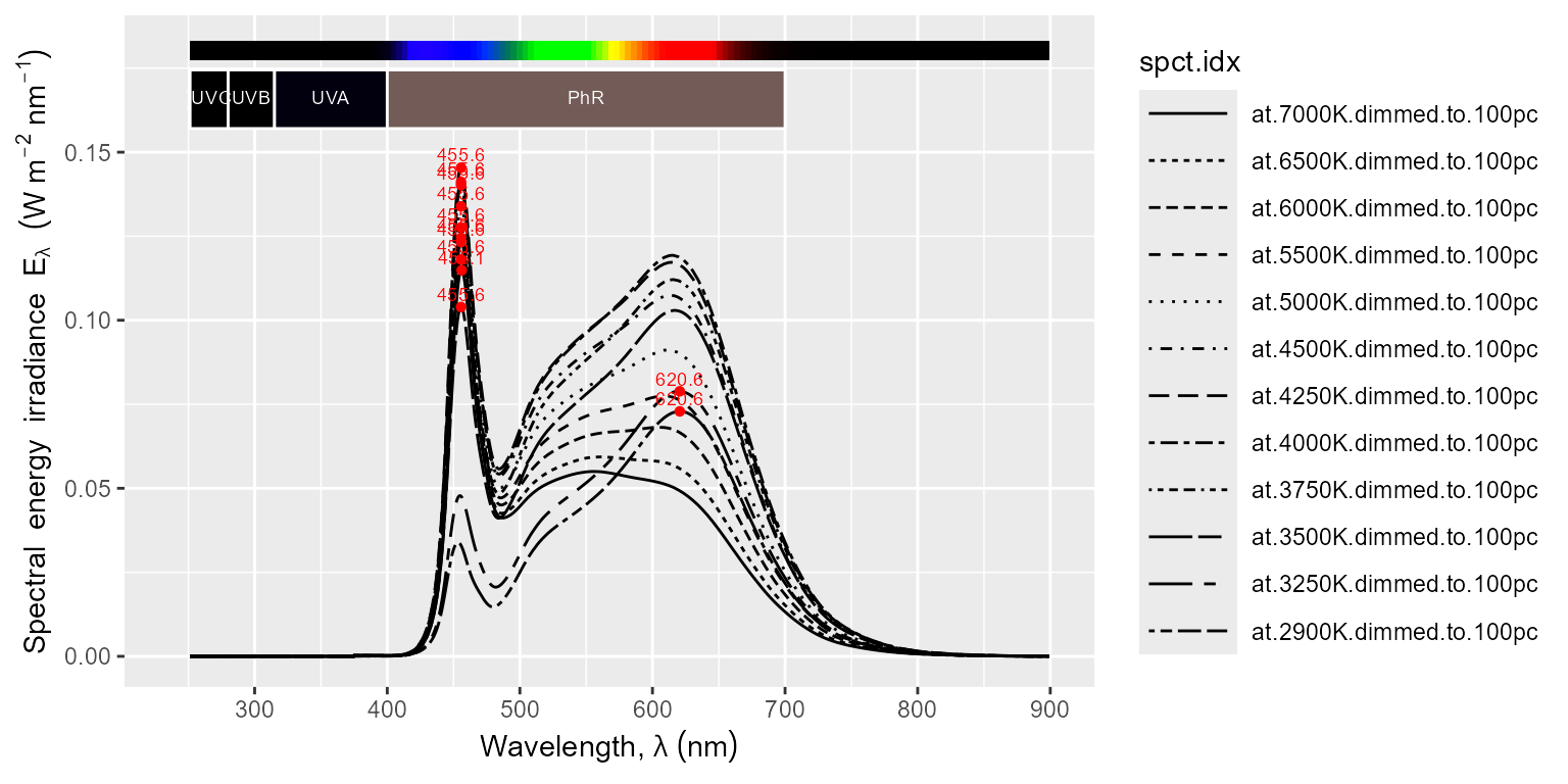 names(elgato_klm_cct.mspct)## [1] "at.7000K.dimmed.to.100pc" "at.6500K.dimmed.to.100pc"