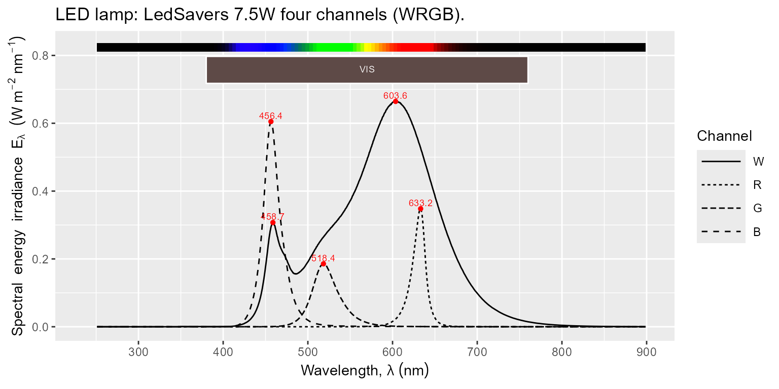 names(ledsavers.mspct)## [1] "B" "blue.green" "bluish.green" "cool.green"